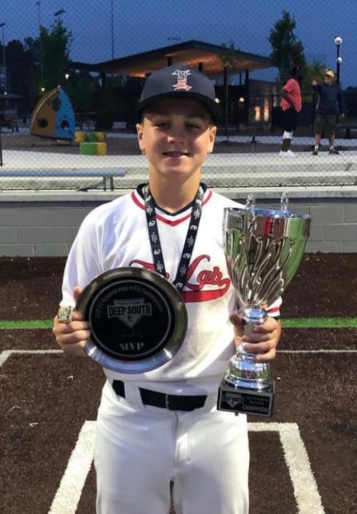 Gunner Skelton is a 2026 SS/RHP with a 5-7 150 lb. frame from Columbia, TN who attends Columbia Academy. He ran a 8.26 second sixty. A primary short stop with a smaller frame. On the infield he has some actions with the foot working to and through the baseball while receiving the baseball with soft hands. His athleticism on the infield project well with his acorns and will keep getting better as he matures. On the mound he starts with a side step into a quick leg lift as the arm works short through the back up to a three-quarters arm slot with a fastball at 68-74 mph throwing a lot of strikes as he works quick. He mixed in a curveball at 65 mph with slurvy shape. Right-handed hitter, showed good bat speed in batting practice driving baseballs off the wall. The athletic swing translated to the game with multiple barrels in game action as he routinely impacts the baseball hard on a line. Named to the 2021 13U Summer Main Event Top Prospect List.